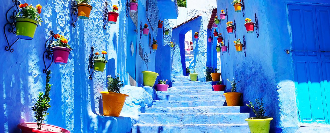 Following breakfast this morning, we head into the picturesque Rif Mountains to the southeast with our guide for the two-hour drive to the blue city of Chefchaouen, with one of the most beautiful Medinas in Morocco. Formerly a protectorate of Spain, this picturesque town of blue and white wasn’t really known to the world until 1920 when Spanish forces overcame a local warlord. During World War II, Jews sheltered here and the town became better known. We’ll be guided through the colorful Medina, its markets and its Kasbah before enjoying lunch and free time afterwards to explore its meandering narrow streets. On-route back to Tangier, we’ll enter Assilah through theBab el Bahror Sea Gate, the entry point for successive occupation over the centuries by Romans, Spaniards and Portuguese. Its seaside bastions, towers and ramparts offer great walking paths and this artistic town has become famous for its annual summer world music festival. Colorful and fantastic art designs cover many of the walls in Assilah. We’ll return to Tangier in the early evening in time for dinner. Meals B