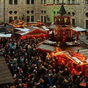 Today, it's your choice! You may step into royal history with a visit to the Treasury of the Munich Residence, where centuries of Bavarian splendor are displayed in dazzling crowns and priceless artifacts. Then, wander through the festive courtyards of the Munich Royal Palace Christmas markets, browsing handcrafted treasures and enjoying seasonal local specialties amid twinkling lights and holiday cheer -OR- savor Munich through its flavors on a guided food experience. Discover beloved Bavarian specialties while exploring local markets and traditional eateries. Continue to Marienplatz, the city's vibrant central square, and witness the charming Rathaus-Glockenspiel performance as its colorful figures reenact historic Bavarian events. Enjoy lunch on your own and spend the afternoon discovering Munich at your own pace. This evening, gather with your fellow travelers to enjoy dinner featuring regional cuisine.